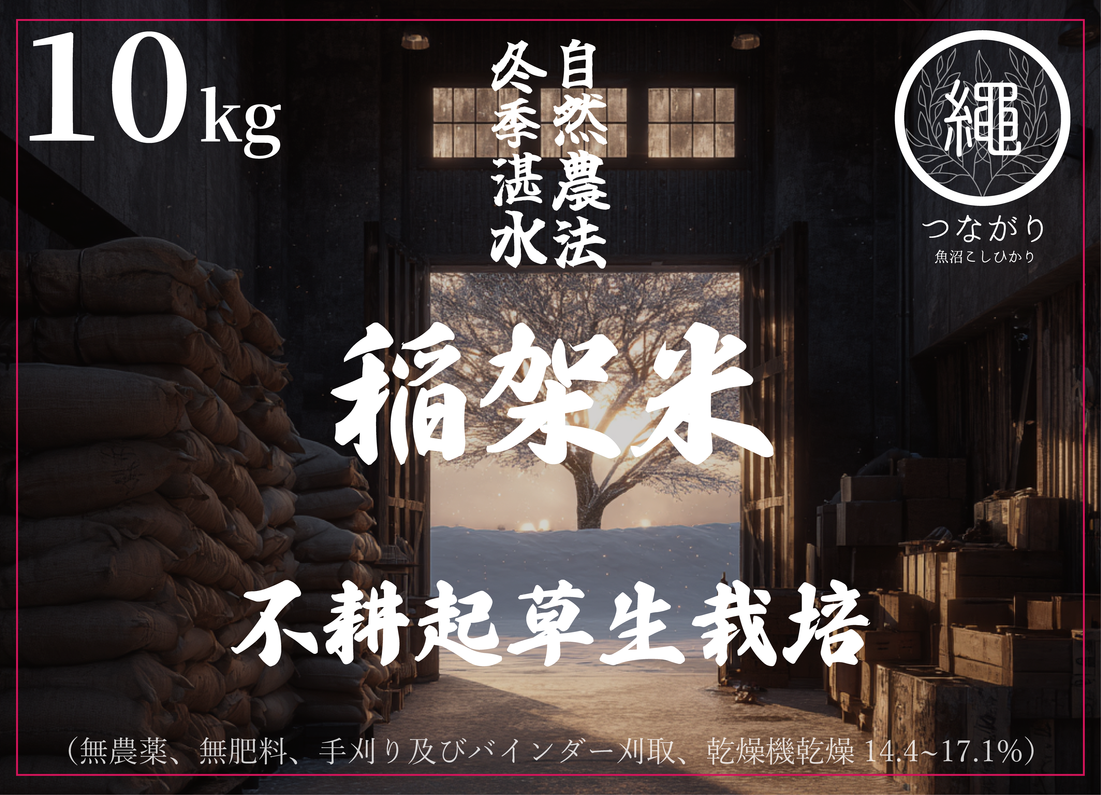 (白米)不耕起草生栽培 自然農法 冬季湧水 稲架米 10kg